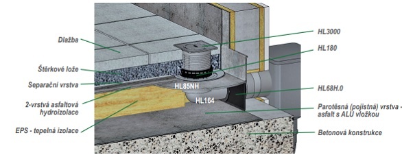 Atikové odtoky HL68 pro moderně řešené budovy a plochy, skladby teras a balkónů, zdroj HL Hutterer & Lechner GmbH