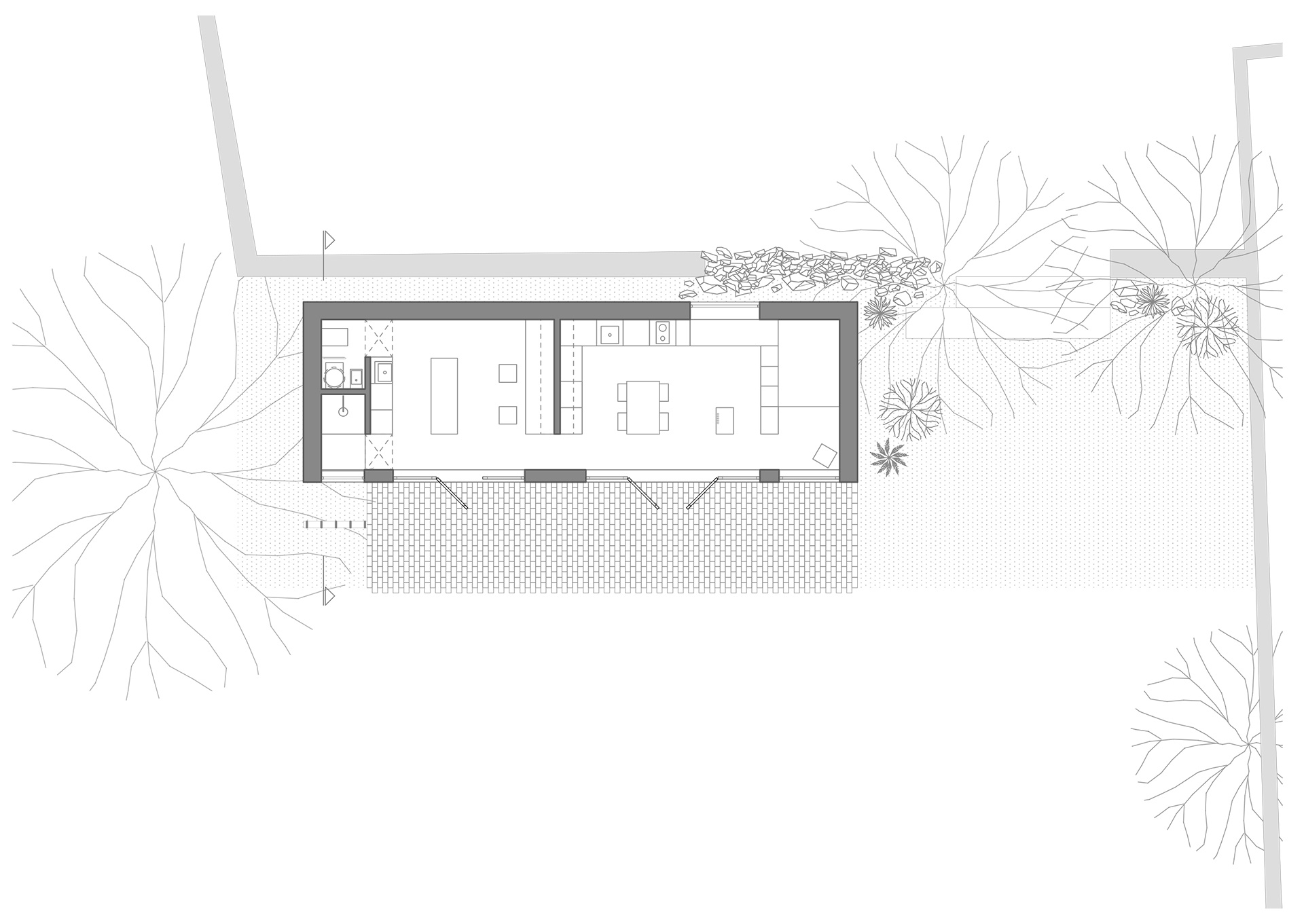 Dřevostavbu obložili cihlou. Maličký domek vypadá jako věčně rozestavěný, vládne mu surovost materiálů