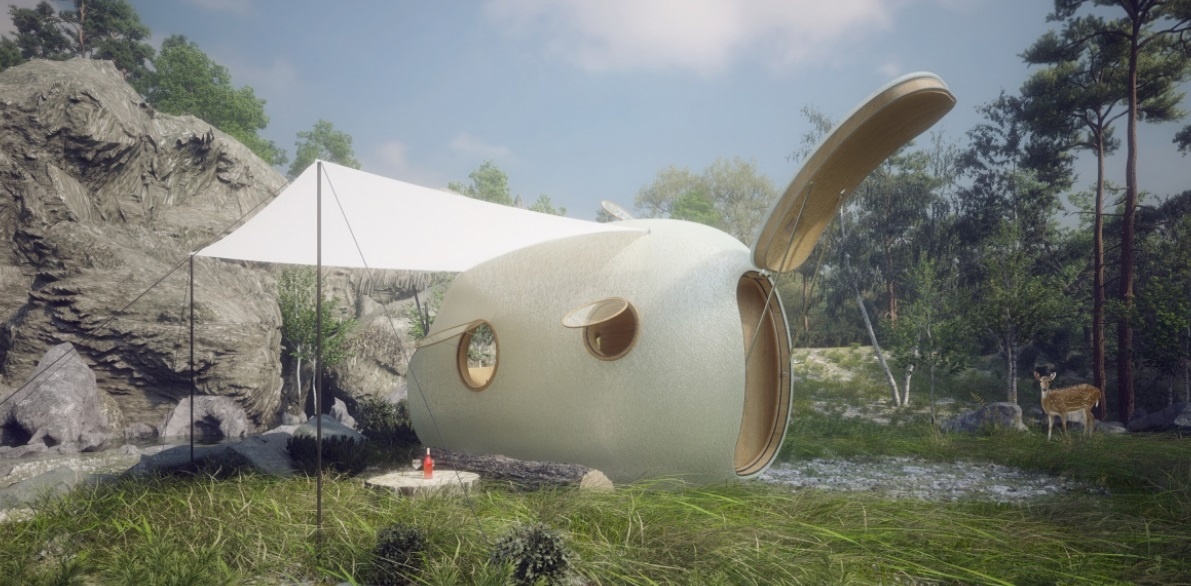 Mobilní útulna s odnímatelným podvozkem. Rozměr 2,55 x 6,8 x 4 m. Váha 3,5 t umožňuje přesouvání s osobním autem na silnicích. Je navržena pro 4 lidi na 4 dny pobytu. Je to Faradayova klec, bez signálu a prosta technologií. Obsahuje obytný prostor, saunu, koupelnu a spací patro pro 2 osoby. Jídelní stůl v obytném prostoru je polohovatelný, vznikne palanda pro další 2 osoby, tak jako je tomu na lodích. V létě je možné část střechy otevřít a propojit se tak s krajinou. Nádrž na pitnou vodu je pod lavicí a ruční pumpou se voda přesune do boileru nebo do přečerpávací nádrže v patře, odkud teče samospádem do sprchy (vnitřní i vnější). Kamna vytápí prostor, slouží i pro vaření spolu s plynovým vařičem, vytápí saunu a ohřívají vodu. Toaleta je kompostovací, separační. Konstrukce je tvořena překližkovými lamelami ve třech osách. Skelet konstrukce je zpevněn laminátem. Dutiny mezi lamelami šířky 100 mm jsou vyplněny stříkanou PIR izolací. Interiér je potažen dýhou. Okna jsou polykarbonátová.