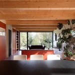 V přízemí jsou umístěny veškeré obytné místnosti, bydlí tady majitelé domu, podkroví se čtyřmi ložnicemi a koupelnou je určené převážně pro návštěvy. Dřevěná konstrukce teras se subtilním kovovým zábradlím s výplní z nerezové sítě se ukrývá nad srázem v korunách stromů. Můžete tak vyjít z obýváku a ocitnout se vysoko nad hladinou rybníka posázeného lekníny, poslouchat zpět ptactva a kochat se pohledem na krásu celé přírodní rezervace. Svoji poezii má jistě i původní sklep staré stáje zasazený hluboko do svahu v pískovcové opěrné zdi.