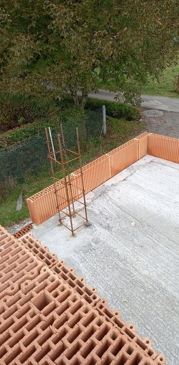 V případě absence ztužujících stěn je jako dalším vhodným, leč náročnějším řešením provedení svislých železobetonových sloupků v nadezdívce, které jsou ukotveny do tuhé stropní konstrukce a provázány v další etapě s věncem – viz obrázek. Vzdálenost sloupků je cca každé 2,0 m a je předmětem statického návrhu.