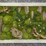 Z těchto mechů lze vytvořit i velkoformátové mechové stěny, nebo aranžované mechové kompozice v rámech. Poutavý vizuální dojem vytvoří kombinace mechového obrazu s betonovou stěrkou. To je další z produktů společnosti NĚMEC s.r.o. Mechový obraz tak můžete pověsit na stěnu, na kterou je aplikovaná betonová stěrka, nebo si vybrat mechový obraz, s betonovou stěrku na svém rámu.