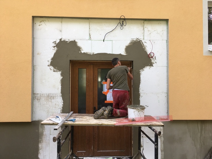 Jako velkou chybu označil Aleš Brotánek to, že se výměna oken neprováděla současně se zateplením, obec i samotní nájemníci mohli výrazně ušetřit. Bylo možné volit kvalitnější profil oken za stejnou cenu a profesionální přístup k jejich zabudování, včetně záruk. Komplikované bylo podle jeho slov hlavně znovuosazení před lety vyměněných plastových oken. Bylo nutné je opatrně vypreparovat z ostění a nově osadit do roviny tepelné izolace na kotevní profily, aplikovat těsnicí pásky a zednicky začistit celou vnitřní špaletu. To byl hlavní důvod většiny sporů. Nakonec se ale podařilo prosadit provedení bez narušení tepelné vazby, která byla příčinou rosení a vzniku plísní. Vyřešily se i tepelné mosty, včetně potlačení tepelné vazby základů. Přes komplikovanou konstrukci římsy, stropu půdy a naprosté většiny podlah nad sklepy byla provedena souvislá tepelná obálka stěn. Odbouraly se vystupující římsy balkónů a přístřešků a nahradily se novými s použitím kotevních prvků s přerušenou tepelnou vazbou. Projekt a fotografická dokumentace ateliéru ukazuje postup prací, který dále komentuje sám architekt: „Hlavní střešní římsa musela být opláštěna tenčí vrstvou izolace s ohledem na geometrii střechy s kvalitnější tepelnou pěnovou izolací. Základy bylo nutné odkopat a doizolovat do nezámrzné hloubky, aby se vyřešila tepelná vazba styku s terénem a vnitřním přetažením tepelné izolace po stěnách pod úroveň stropů ve sklepích. Zcela se tak odstranila jedna z příčin vzniku plísní, které se tvořily na promrzajících partiích,“ pokračuje Aleš Brotánek.