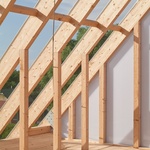 Výhled odtud je fantastický, a zrovna tak zajímavý je pohled na střechu zvenčí. Pravidelnost střešní konstrukce totiž vytváří iluzi pravidelné světlé střešní krytiny. Ta tu absentuje, směrem na západ je celá plocha střechy prosklená, takže výhled na zelené údolí a západ slunce lze zažít i zevnitř. Východní sklon střechy je z polykarbonátu, který vytváří působivou hru světla, stínu a měnících se barev při pohybu slunce nad domem. Podle Larsena to je jedním z velkých kouzel domu, který každý nový den obdařuje zážitkem.