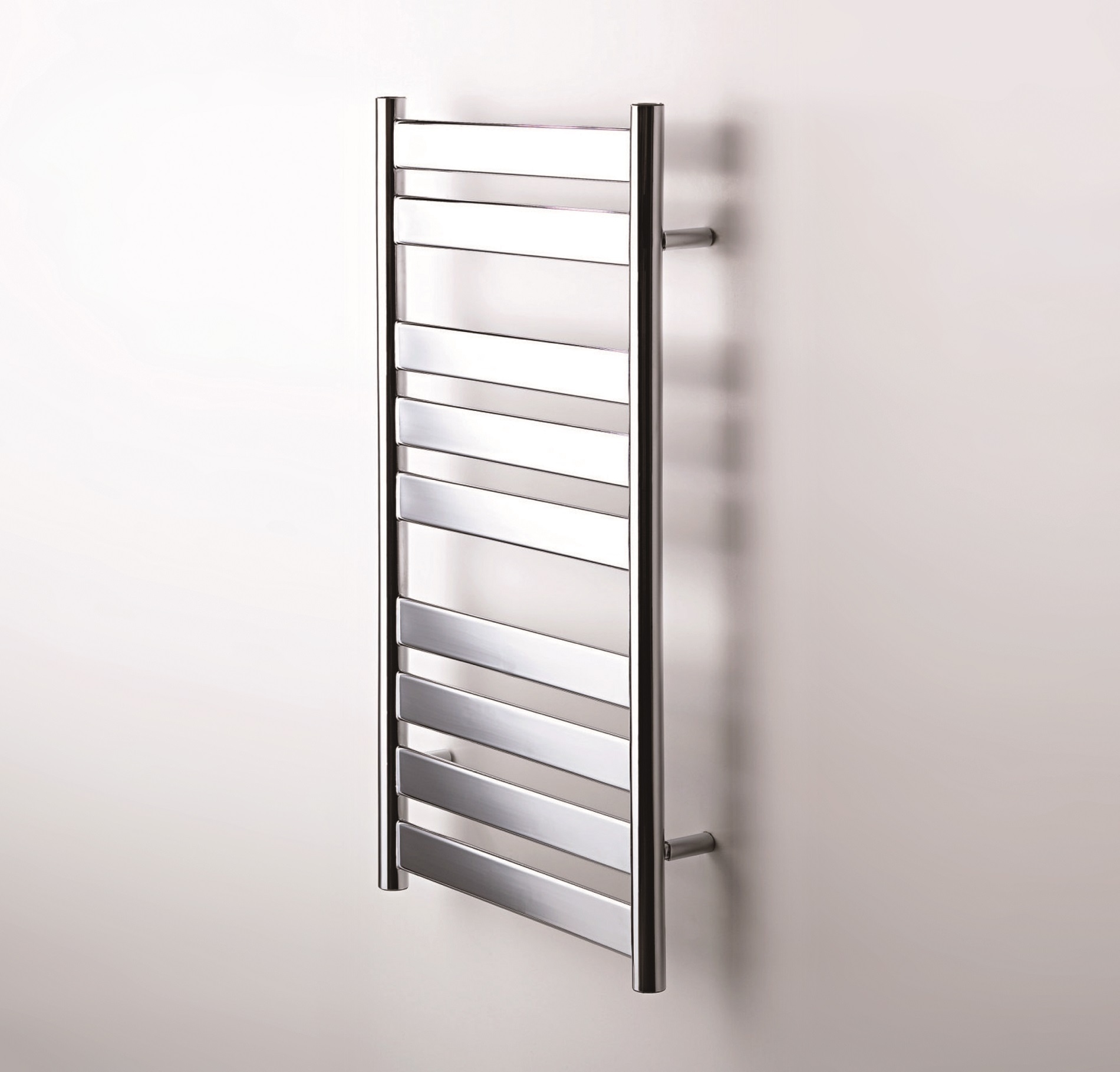 Elegantní ploché vodorovné trubky radiátoru Zehnder Zeta v chromované úpravě. Zdroj: Zehnder