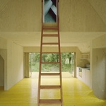 Přízemí je z logiky věci tou nejfrekventovanější a tudíž denní částí. Koupelna, lehce zasazená pod úrovní terénu, k ní nenápadně přiléhá. Získává přirozené světlo přes malé střešní okno. Vzniká tím zajímavý introvertní a intimní odloučený prostor. A místo na spaní? To pak nemohlo být umístěno nikde jinde, než tradičně v podstřeší.