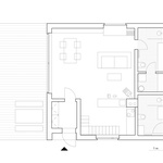 Velký dubový jídelní stůl v obytném prostoru plní zároveň i funkci pracovního stolu. Technické zázemí pro práci se dá pohodlně vysunout nad stůl z jedné ze skříněk knihovny. Kvalitu pracovního prostředí zlepšuje také internet od Starlinku a biodynamické osvětlení, které po setmění neobsahuje modré záření a lépe se vám tak usíná. Chata je vytápěná primárně litinovými kamny na dřevo. Sekundární temperování je zajištěno podlahovým topením.