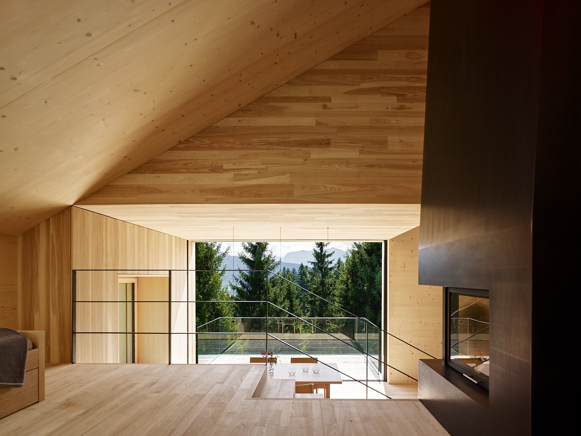 Cestičku k řešení si ale nakonec profesionálové ze studia Architektur-SCHWEIGHOFER přeci jen našli. Tím, že adaptovali regionální stavební postupy, které vhodně poupravili na současné požadavky. Jasnou odpovědí na zadání, které nenabízelo příliš mnoho manipulačního a vyjednávacího prostoru (fyzicky i legislativně) bylo rozhodnutí pro konstrukci z masivního dřeva. Proč právě ono?
