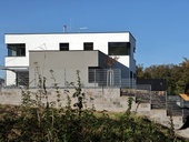 Jednoduché tvary, jednoduché materiály, určitá strohost, přehledná dispozice, čitelný systém konstrukčních prvků, určitý minimalismus. Pokud takto nějak zní zadání klienta, pak byla mise architektů splněna. Zní to jasně, ale tak snadné to není, to snad tuší každý. Ta mřížka je jakýmsi předobrazem parcely, která se ocitá v přísně střižené síti okolní zástavby řadových domů a další zástavby v šachovnicovém uspořádání. Naše parcela se nachází právě na kraji této zástavby a je mimořádně prostorná. Dispozice je v podstatě jednoduchá, strohá, čtvercová a střídáním monolitických stěn a prosklení umožňuje nádherné průhledy, vpouští tudy dostatek světla a okolní krajinu, zároveň je v částech privátních plnými stěnami uzavírá. Prostřídáním konstrukčního systému, prosklení a stěn, přesahů stropní konstrukce se vytrácí rigidita čtvercového půdorysu a dispozice se tím krásně rozvolňuje. To vše, společně se zelenou střechou, jsou bonusy dobré moderní architektury a není od věci poznamenat, že to vše, co zde bylo zmíněno, naleznete v principech funkcionalismu. Což je ovšem dobře.