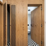Pokud se podíváte na dispozice v projektové dokumentaci a posléze na fotografiích výsledku, seznáte, že práce byla odvedena skvěle. Dispozice jsou „učesané“, přehledné a vše je tak, jak má být. Pokud dokáže architekt dát domu systém, kdy smysluplné vazby uvnitř dispozice jsou jednoduché a nekomplikované, pak je vítězství na dostřel. Jak potom uchopí materiálové pojetí není sice podružné, ale je to věcí investora a těch, kterým bude dům říkat pane. Tudíž to může být velmi rozličné pojetí, které je většinově osobité a poplatné naturelu obyvatel domu. To už je to nebe, pro každého z nás. Ale je třeba to vše vybudovat na základu, který funguje. Zvolíte-li fasádu bez příkras, nekomplikovanou, minimalistickou či chcete-li takřka funkcionalistickou jako v tomto případě, je zcela na vás. Stejně tak materiály v interiéru jsou zvoleny s ohledem na představy architekta i klienta. Skvěle působí tmavé dřevo užité v interiérech, světlé dřevo ve schodišťovém tělese včetně stropu a na části podlah, v kontrastu s bílými omítkami stěn. Perforované povrchy s diagonálním uspořádáním tvoří jistou rustikálnost dřevěných ploch, obkladu schodiště a některých dveří včetně mobiliáře a jsou pro tento dům specifické. Obdobný motiv je poté využit i v některých částech podlah s dlažbou. V konečném účtování je dům vyřešený skvěle, esteticky velmi zdařilý, ale taky osobitý a jedinečný, prostě ten „jejich dům“. Zní to velmi jednoduše? Nedejte se mýlit, je za tím spousta práce, různých nechtěných překvapení, spousta peněz i starostí a hledání správného řešení. Nicméně rodinný dům je většinou na celý život a často je třeba k jeho zdařilé realizaci překonat trochu překážek a popasovat se s nimi. Výsledek totiž potom za to stojí. Ale to už je na vás, jak ho posoudíte…