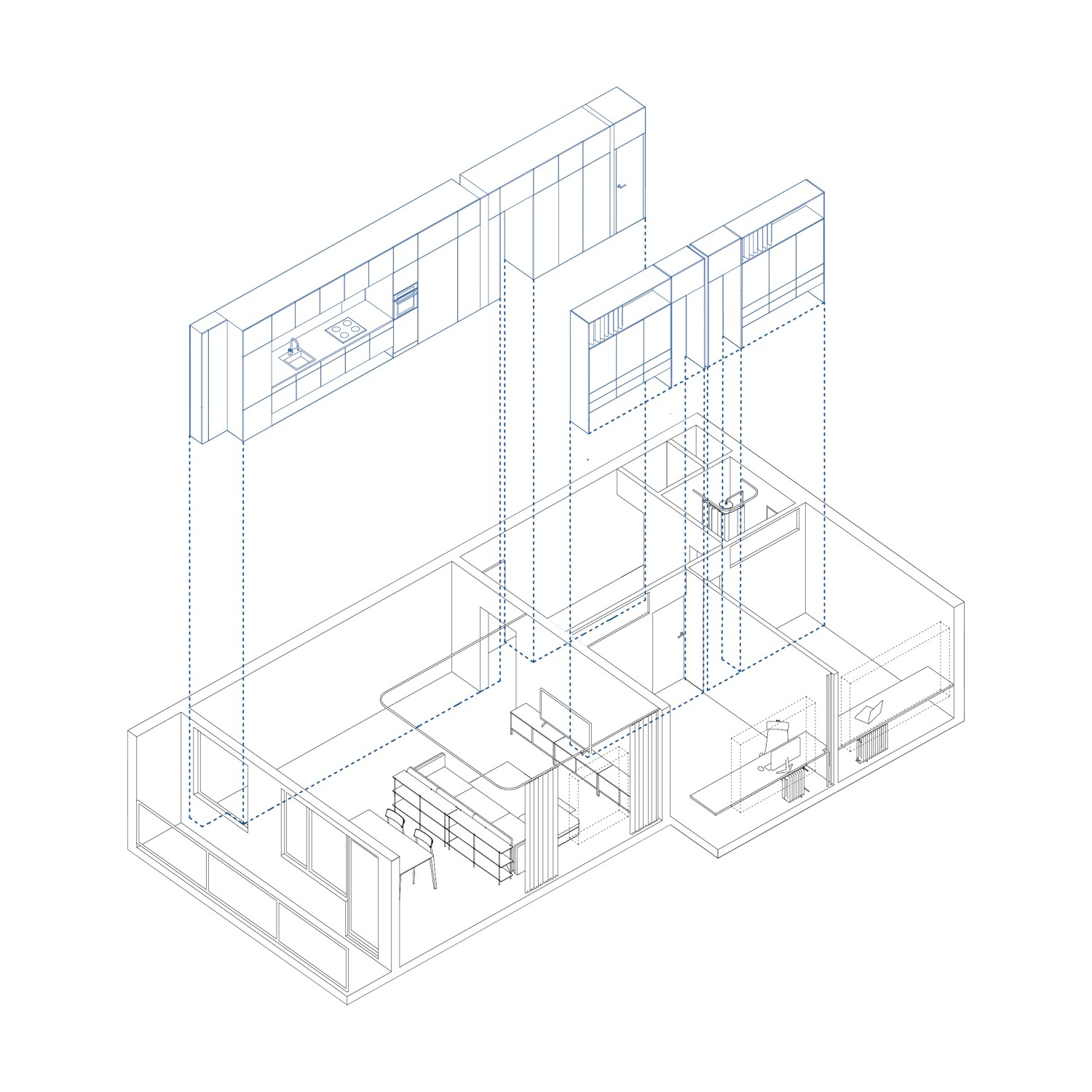 Axonometrie řešení. Zdroj: Studio STUDIO RDTH architekti