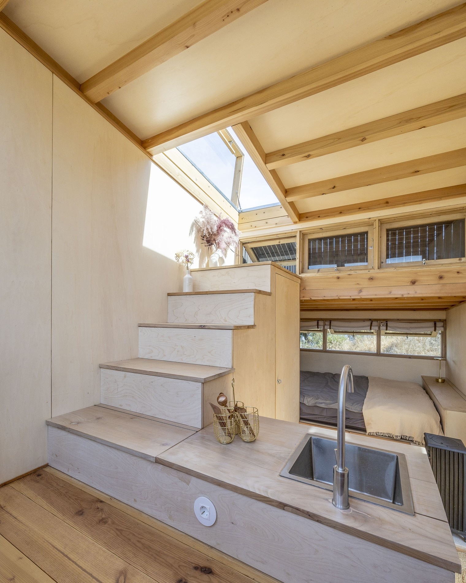 A Terra 3? Tento malý dům je vlastně jakousi observatoří, zasazenou do přírody. Při vstupu projdete úzkou chodbou, která ukrývá toaletu i sprchu po stranách. Uvnitř je ústředním bodem velké kruhové okno, které v obytném prostoru vytváří pocit rozlehlosti. Z tohoto kruhového okna se otevírá polopropustná terasa, která vybízí k odpočinku a rozjímání nad výhledem.