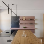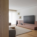 Prírodné drevo a jemné neutrálne farby, spolu s akcentami nadčasovej staromódnej ružovej a pastelovej zelenej, vytvárajú harmonický a príjemný priestor. Čisté línie a teplé tóny podporujú atmosféru útulného, ale moderného bývania. Originálnym akcentom sú i detaily, ako napríklad úchytky v tvare X alebo dve horizontálne línie rôznych náterov v jednotlivých miestnostiach, čím sa udržuje vizuálna kontinuita dizajnu v celom byte.