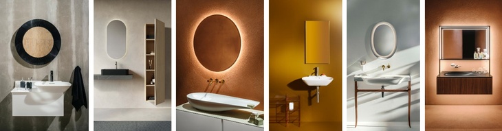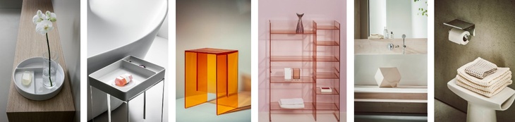 Zleva doprava: Kolekce Val (2x), Kartell • LAUFEN (2x) a Home Collection (2x).