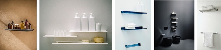 Odkládací poličky jsou nezbytnými pomocníky při organizaci koupelny. Poskytují cenný prostor pro hygienické potřeby, díky němuž jsou rychle po ruce, aniž byste museli pokaždé otevírat skříňku. Už dávno neplatí, že převažují kovové a skleněné produkty. Byť jsou stále oblíbené, cestu do koupelnových místností nacházejí i modernější verze – například v lehkém a bytelném plastu nebo z tenkostěnné keramiky Saphirkeramik. Velkou výhodou obou materiálů je odolnost vůči vlhkému prostředí, ale také snadná údržba.