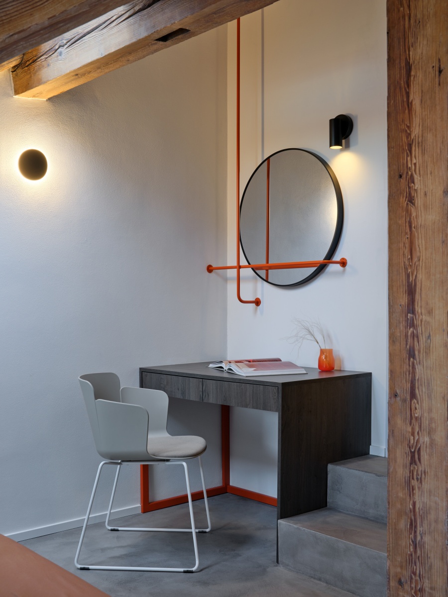 velkoformátová keramická dlažba Chalk Beige – Archceram perforovaný plech – PERFO LINEA střešní výklopná okna – Velux bezzárubňové dveře + obklad stěn (unicolor HPL s dřevěnou hranou, dřevodekor ořech) – Bdoors dvoj-umyvadlo Puro 120 bílá matná – Kaldewei umývátko VAL bílá matná – Laufen pod omítkové i stojánkové baterie Study Exclusive, povrch bílá matná – TRES topné žebříky RAO3 vertikalní, RAL odstín, matný – ISAN retro topná tělesa v koupelnách Charleston bar – Zehnder závěsné svítidlo Pista linear sport, černá – Modular Lighting Instruments stojací lampa CYLS FLOOR M-3908 Black – Estiluz barové židle Lisa Waterproof h.66 – S•CAB konferenční stolky Slit Table-Round Ø45 x H35,5-Black – HAY konferenční stolek Miró, odstín Paprika – Santa Lucia modulová sedací souprava Vesta special – Furninova taburet Tamburello – Novamobili pracovní židle Calla – MIDJ čalouněná postel Bob 160 – Noctis |