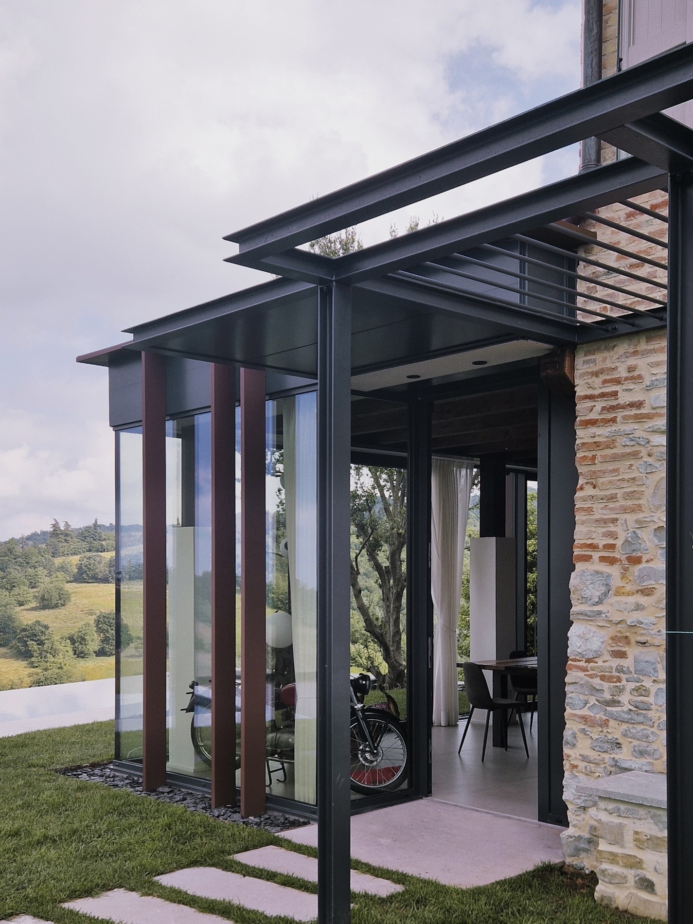 Ten přisazený materiál přístavby vytváří silný kontrast k masivní kamenné hmotě, ale zároveň s ní vede dialog. Staré se tu setkává s novým. Foto: Marcello Mariana