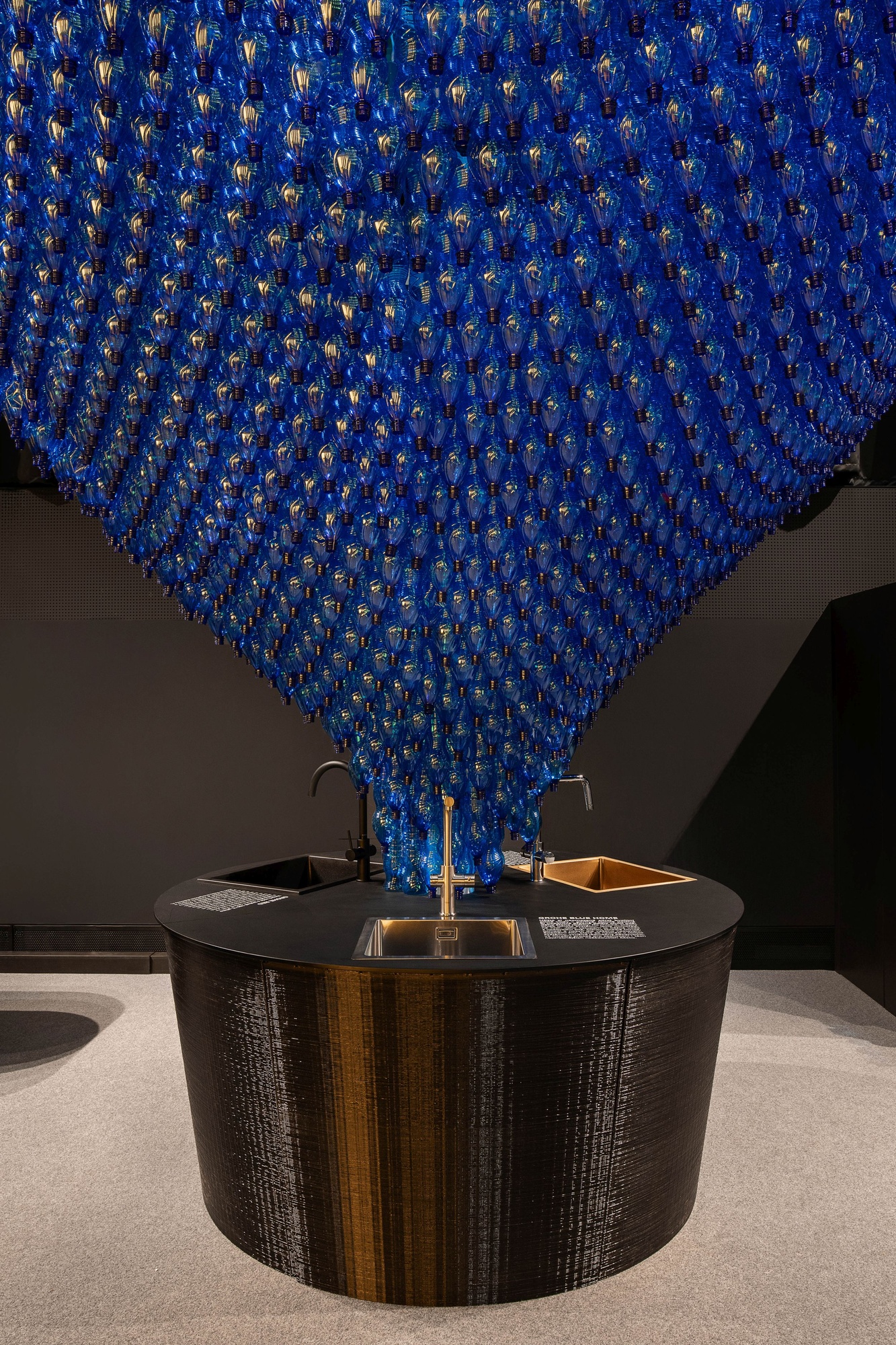 Instalace tvořená ze 3 600 recyklovaných PET lahví symbolizuje minulost – právě tolik lahví se totiž v České republice spotřebuje každých pět minut. Tento obraz postupně přechází do současnosti, kterou představují sokly z recyklovaného plastu. Budoucnost pak ztělesňuje technologie GROHE Blue – inovativní kuchyňské systémy poskytující filtrovanou, chlazenou i sycenou vodu přímo z kohoutku. Nabízejí chytrý způsob, jak s jejich pomocí lze omezit spotřebu plastů: čtyřčlenná domácnost díky nim může ušetřit až 800 lahví ročně a zároveň tak snížit spotřebu vody i produkci CO2 spojenou s jejich výrobou. Systém GROHE Blue si mohou návštěvníci na místě vyzkoušet a natočit si z něj neperlivou, jemně perlivou nebo perlivou vodu – jednoduché, ale silné gesto udržitelné budoucnosti.