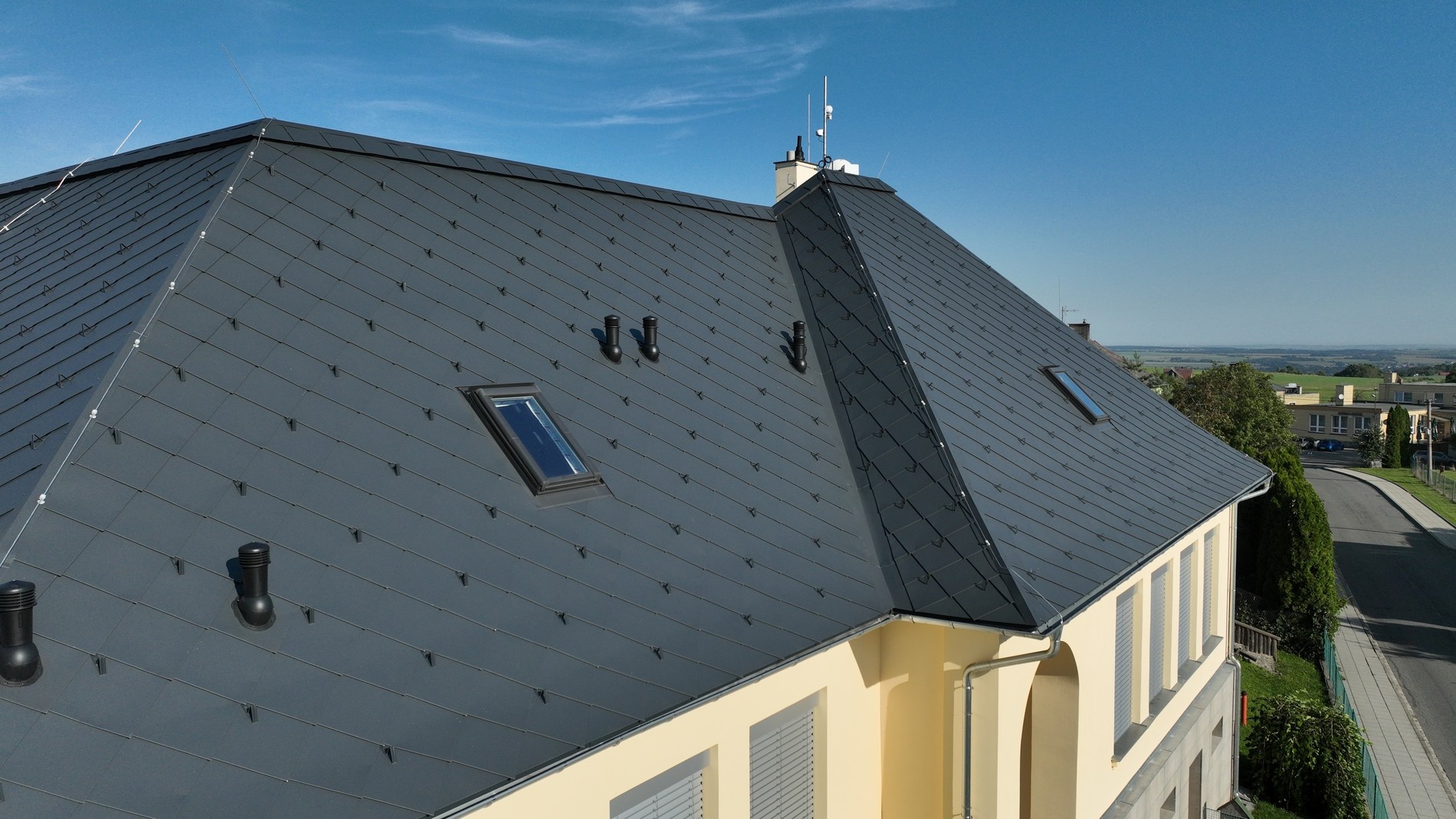 Odvětrávací komínky na střeše SATJAM Rombo Metalic. Zdroj: SATJAM s.r.o.