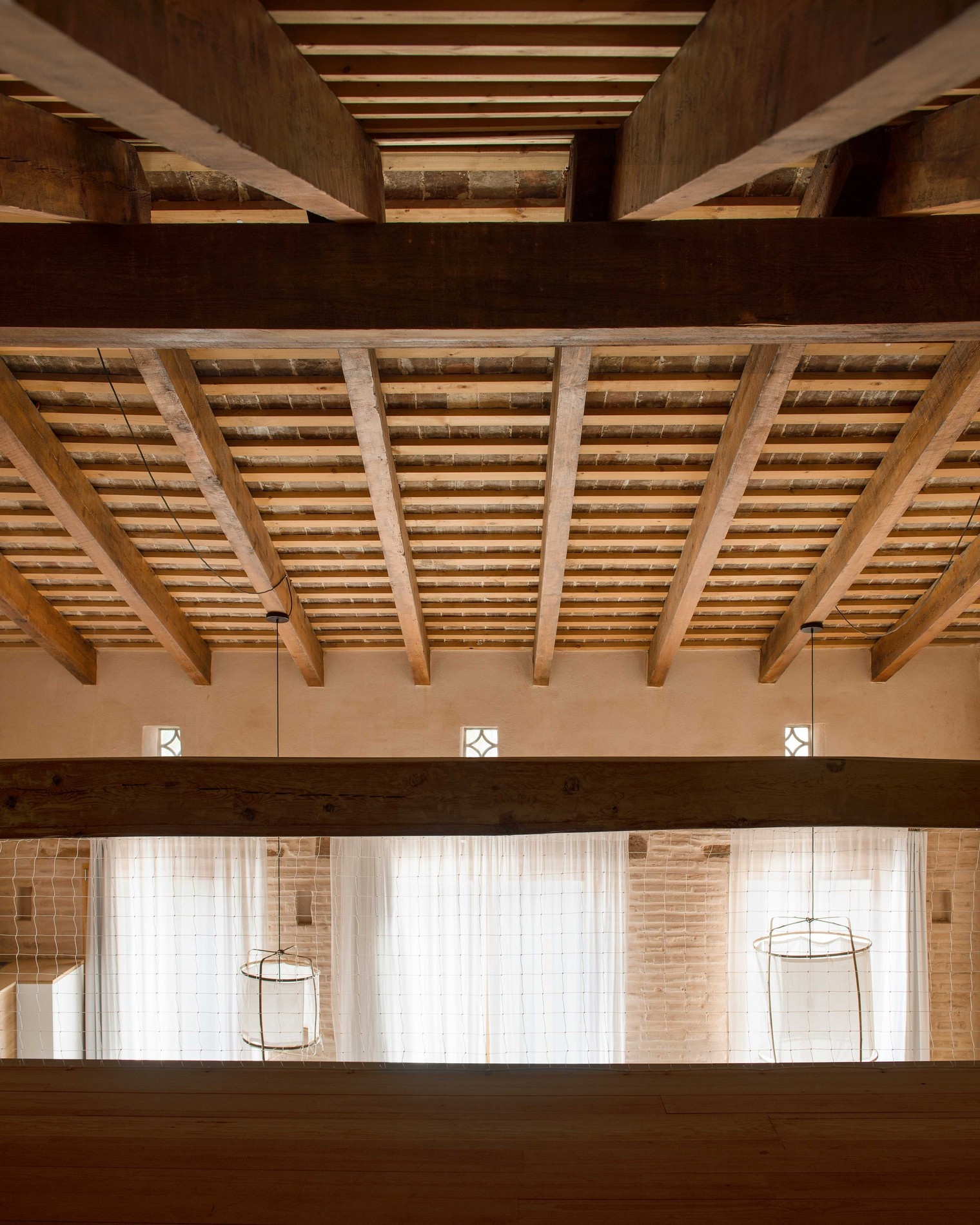 V konstrukci stropů se střídají betonové nosníky s keramickými vložkami, což je pro valencijskou zástavbu 20. století typické. Architekti se rozhodli tento systém částečně odhalit a přiznat jeho přítomnost. Foto: Jorge Peiró