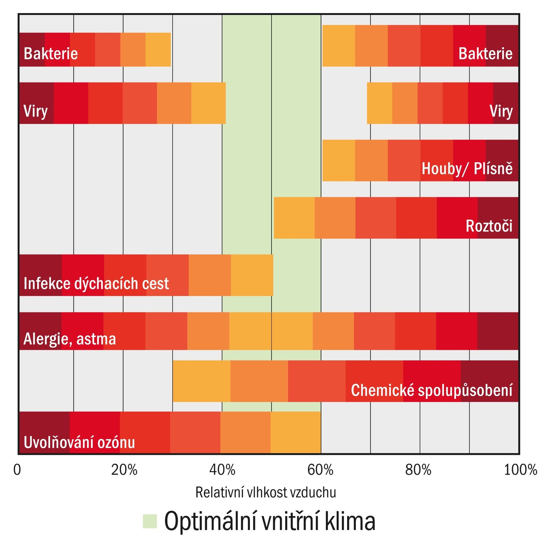 Vliv vlhkosti vzduchu na intenzitu faktorů působících na lidské zdraví. Zdroj: Baumit, spol. s r. o.