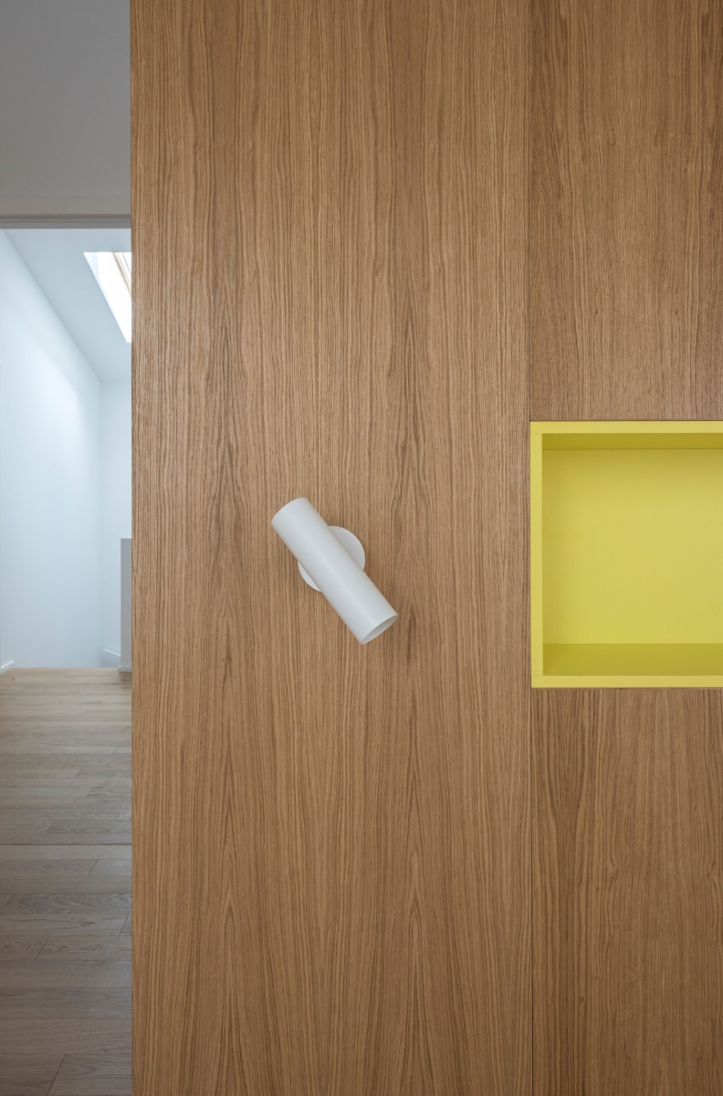 Ložnice podkroví, detail stěny. Foto: Martin Čeněk