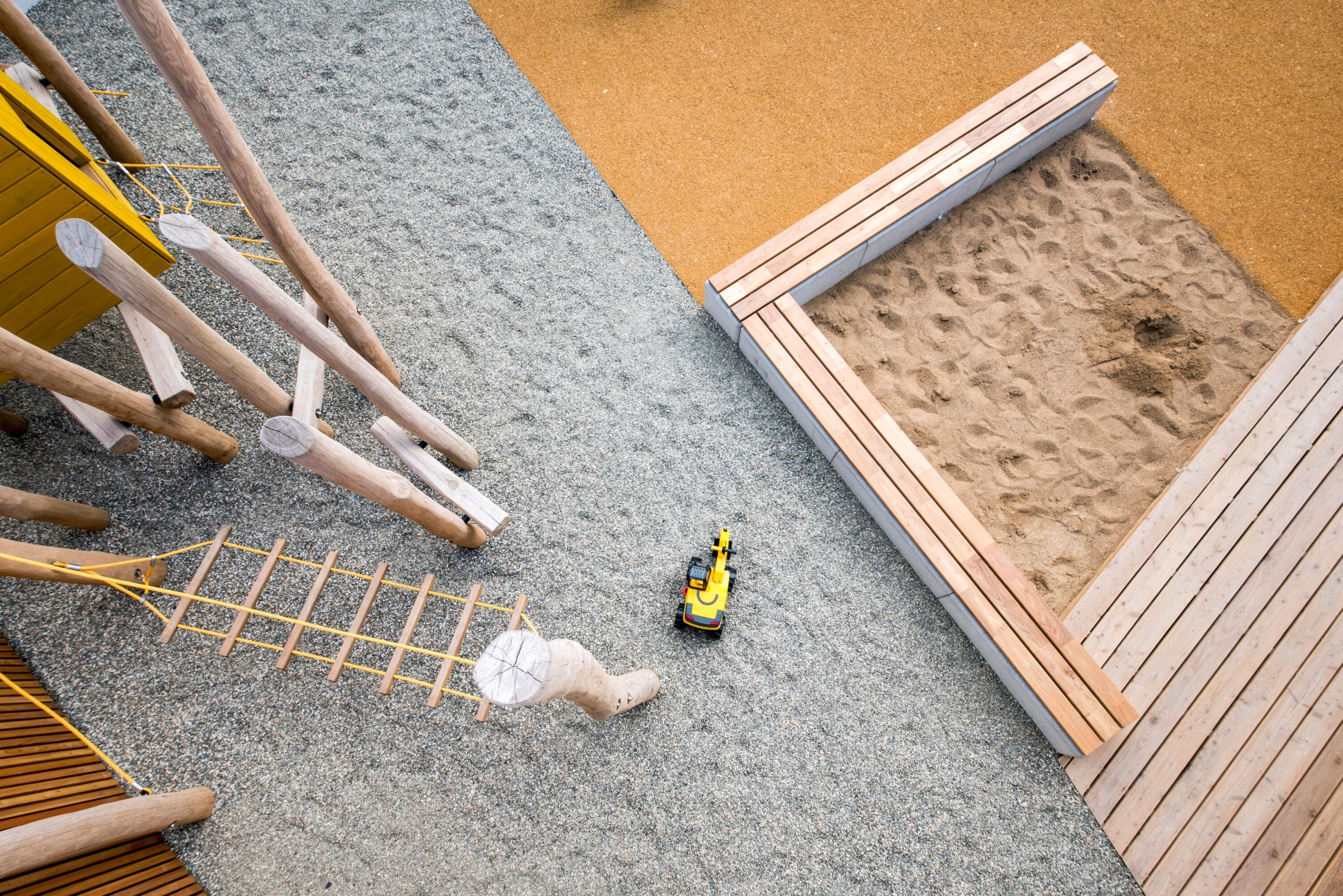 Výrazné materiálové i prostorové oddělení menších ploch vytváří na zahradě spoustu příležitostí pro hry a soutěže, a přitom jasně vymezuje hranice. Zahrada je hravá a plná možností, a přitom se v ní jednoduše nastavují pravidla pro děti i dospělé.