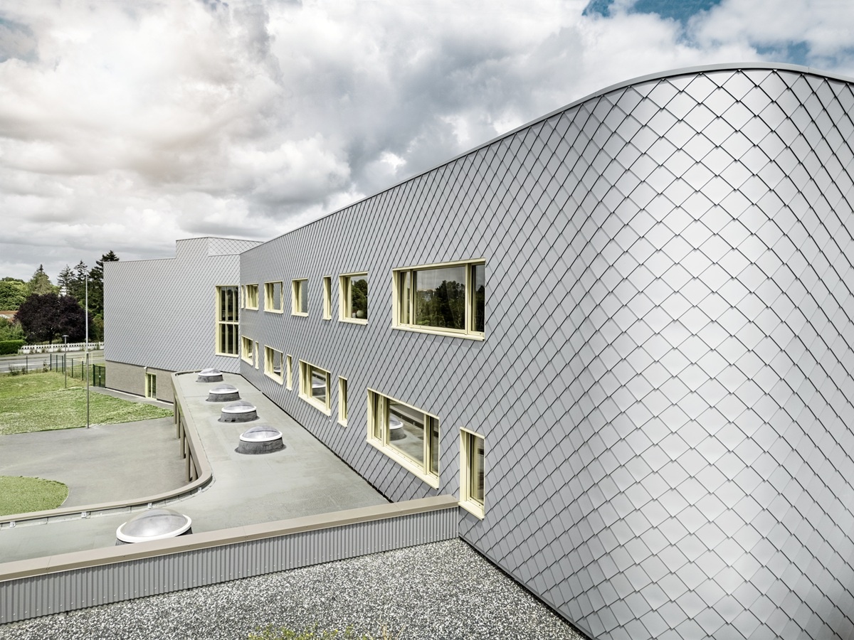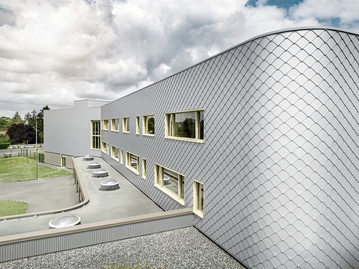 Speciální forma vyžaduje vždy vhodný materiál. Kosočtvercové střešní a fasádní falcované šablony 44 × 44 od společnosti PREFA Aluminiumprodukte byly na novostavbě tělocvičny v západofrancouzském Basse-Goulaine plynule položeny přes všechna nároží, konvexní hrany i na lemování pláště budovy. A přitom rozměry i…