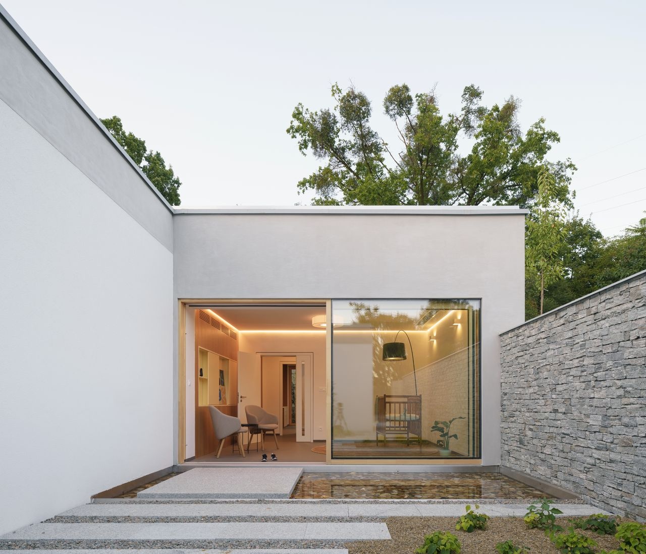 Pocit štěstí z architektury dle porotců přináší další z finalistů, kterým je rodinný dům v Polance nad Odrou (2020) od Pavly a Martina Vymetálkových z ateliéru bydloarchitekti. Jedná se o novostavbu rodinného domu, jež vznikla na místě původního domu po předcích. Architekti zvolili kompaktní a úsporné řešení s důrazem na jednoduché hmoty, přiznané materiály a přirozené propojení interiéru s okolní krajinou. Dispozice ve tvaru H odděluje soukromé části domu – dětské pokoje a ložnici rodičů – od středové obytné zóny, která propojuje vstupní patio, kuchyň a obytný prostor s terasou. Jednoduchá, ale funkční je cihelná fasáda se šachovnicovým vzorem, která propouští světlo, stíní terasu a zlepšuje mikroklima. Materiálová střídmost, betonová podlaha a dřevěné a překližkové prvky vytvářejí klidnou atmosféru jednoduchého, ale promyšleného domova. „Nový, jednoduše tvarovaný bílý dům, který si architekti navrhli pro sebe a své děti, vyniká přirozeností a skromností. Autoři dokázali z vlastního zadání vytvořit dům s harmonickým vztahem k prostředí i životu uvnitř. Dispozice ve tvaru H chytře propojuje denní zónu se soukromými částmi a zároveň otevírá interiér směrem do zahrady. Bioklimatická fasáda z děrovaného cihelného zdiva není jen estetickým prvkem, ale efektivní ochranou proti přehřívání a zdrojem světla a vzduchu. V jednoduchosti návrhu se skrývá síla – každý detail je promyšlený, každý materiál pravdivý. Výsledkem je dům, který ztělesňuje radost, nadhled a pokoru architektů k vlastnímu řemeslu,“ uzavřela porota ve svém hodnocení.