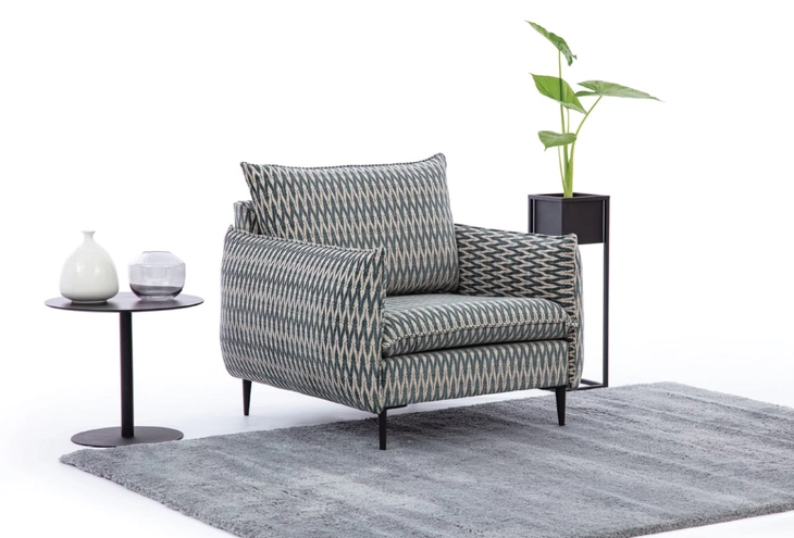 Křeslo Sensi v šedé barvě vedle smaragdově zelené pohovky Gappita, nebo sametové křeslo Next s látkovou pohovkou Candy? A co takhle vzorované křeslo Trosini s hladkou béžovou pohovkou Glossy? Fantazii se meze nekladou.