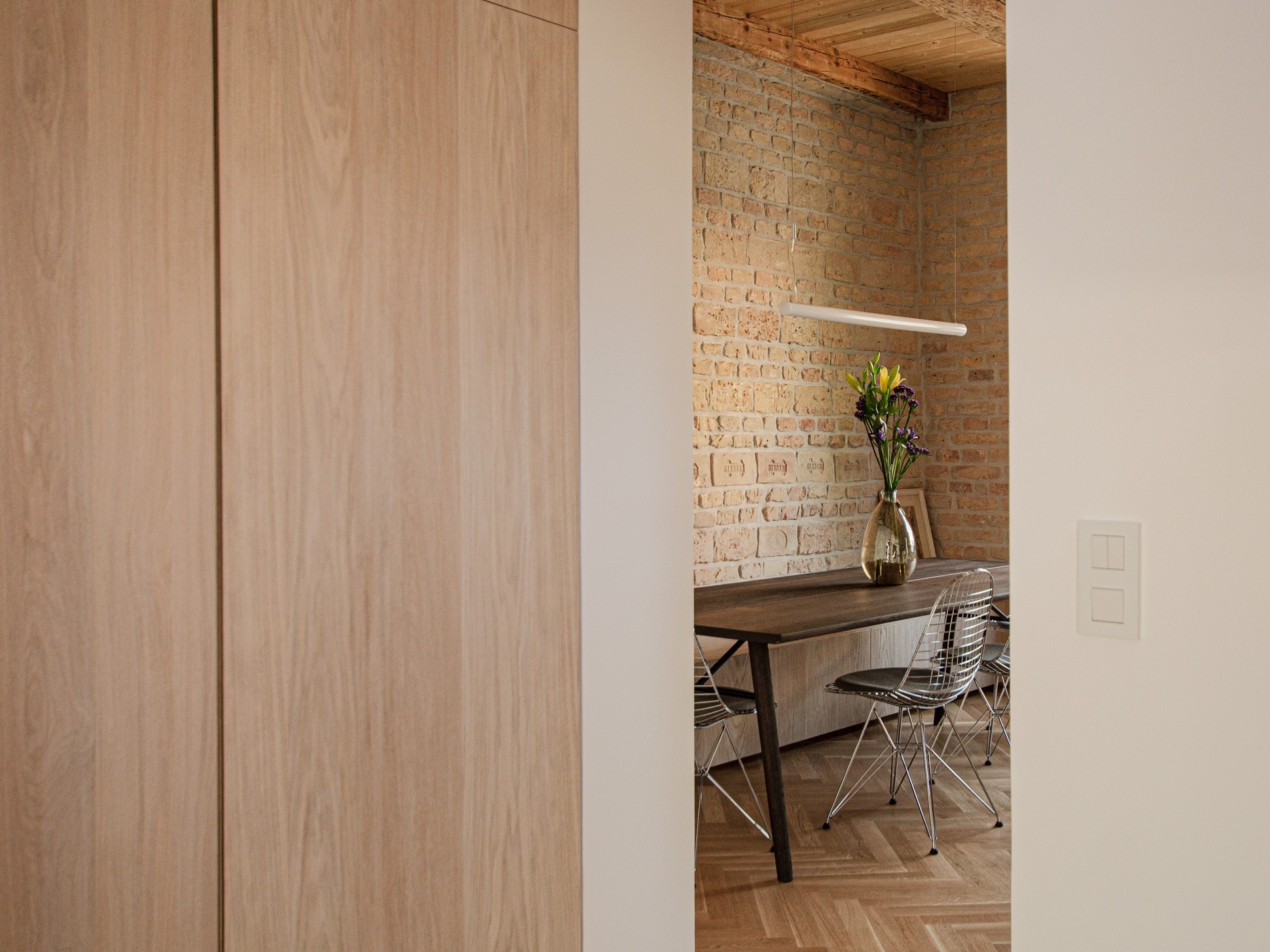 Dům z padesátých let dostal moderní interiér. Panuje zde krása původních cihel a letitého dřeva. Foto: Ing. arch. Marián Gombarček a M&T