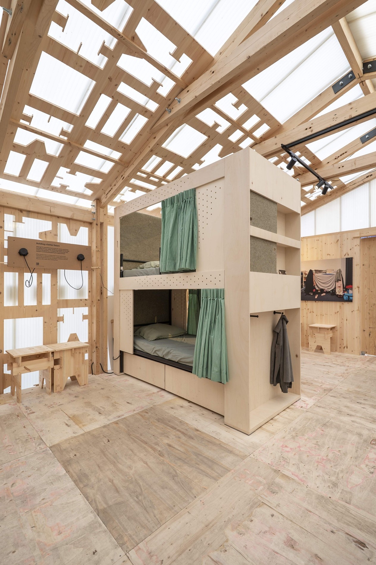 Kabinky z překližky pro důstojné přečkání zimy bez domova. Malý projekt s velkým významem. Foto: Michelle Urbiztondo