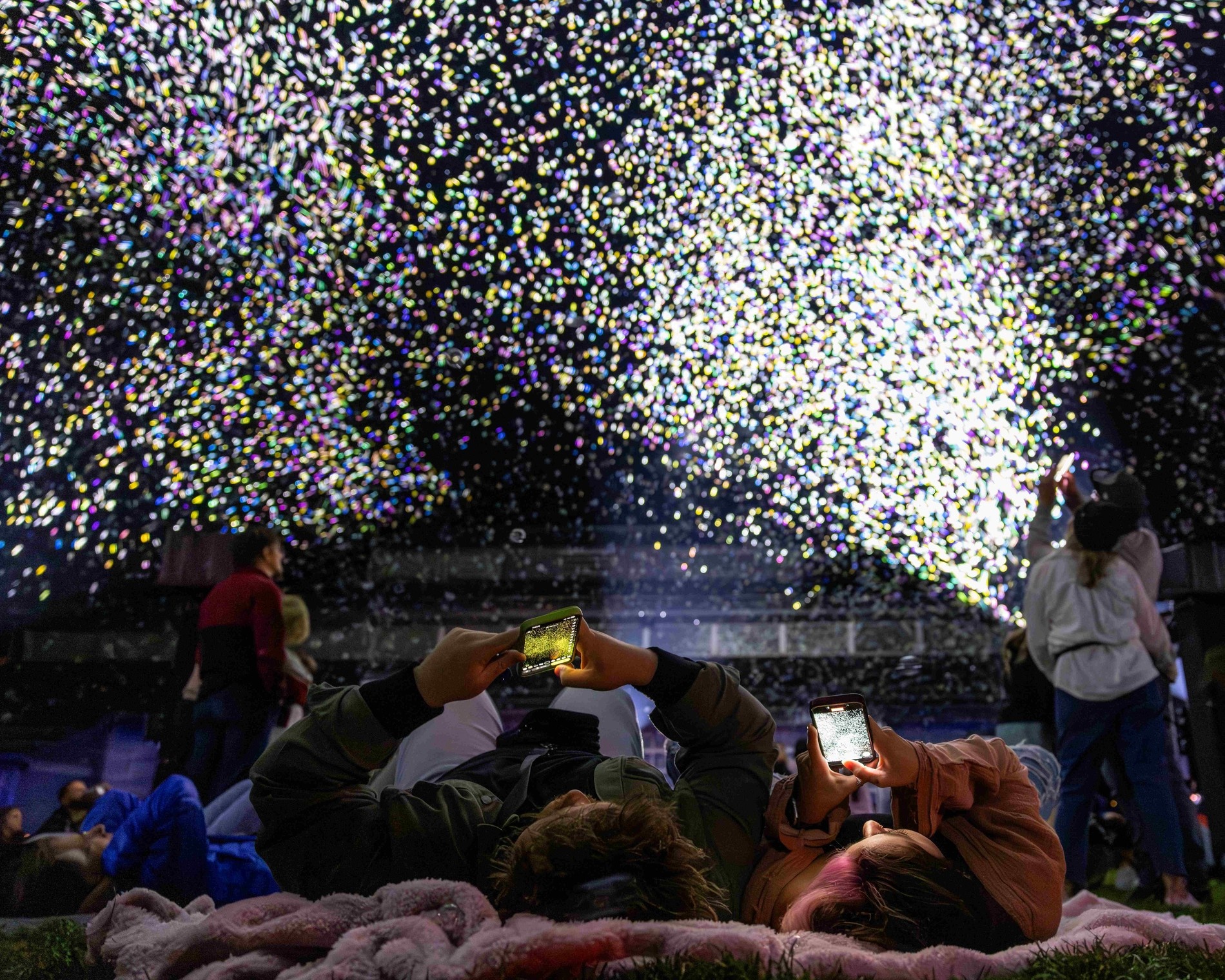 Jenže právě do toho vstupuje ono okřídlené: „Ach, ano.“ Všichni víme a v zásadě souhlasíme na tom, co je na ohňostrojích v nepořádku. Ale co naplat, ono je to pořád krásné. Lákavé, svůdné a opojné na pohled. Ta magie barevných světel a jisker v noci má kouzlo. Foto: Daan Roosegaarde