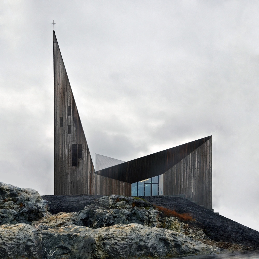 Nový komunitní kostel v Knarviku, který se nachází na malebném západním pobřeží Norska severně od Bergenu, je postaven na privilegovaném místě s výhledem na kulturní krajinu a centrum města. Foto: Reiulf Ramstad Arkitekter, Hundven Clements Photography