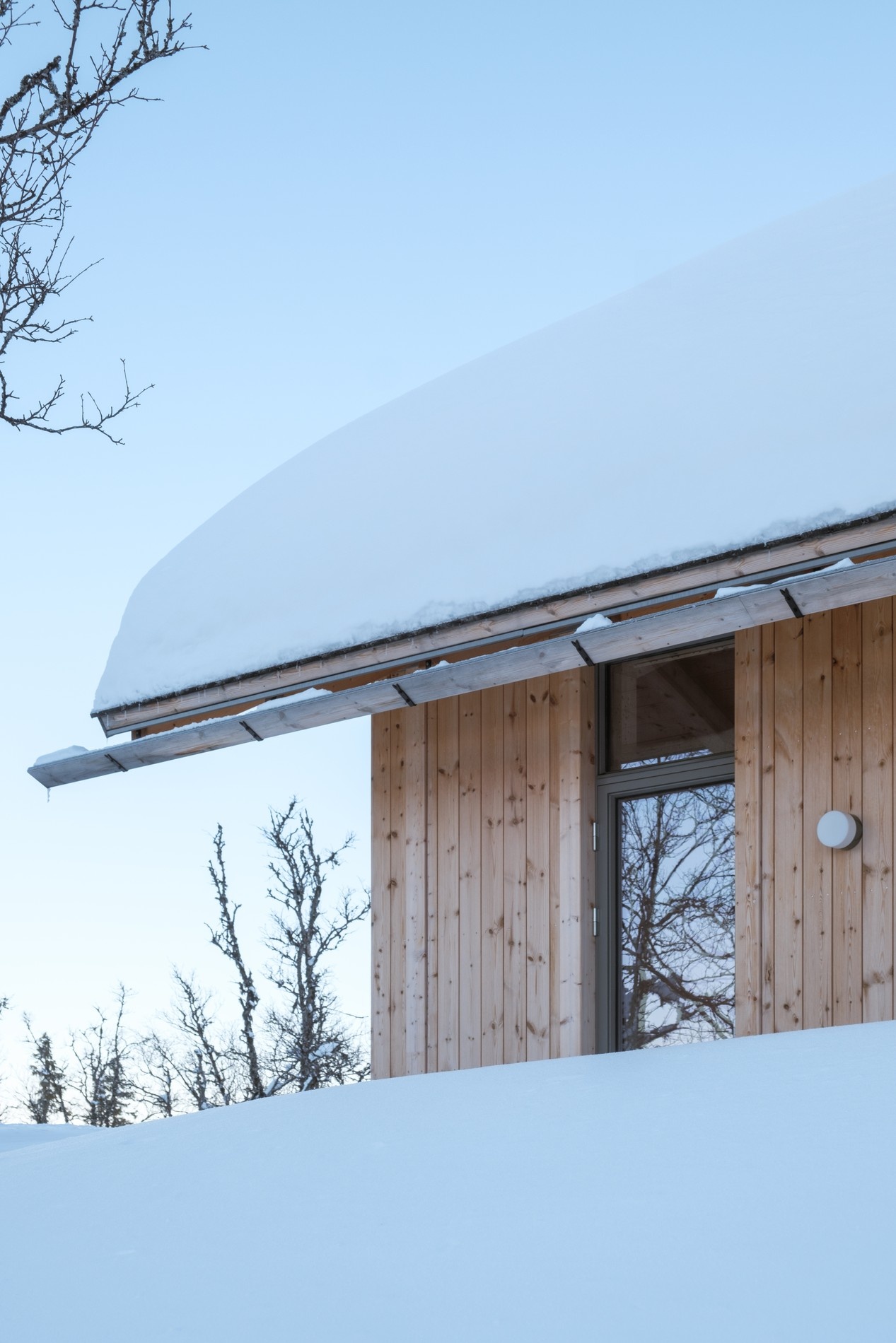 Hnízdo vyrobené ze dřeva. Krásná chata je postavena tak, aby odolávala závějím. Foto: Ruben Ratkusic