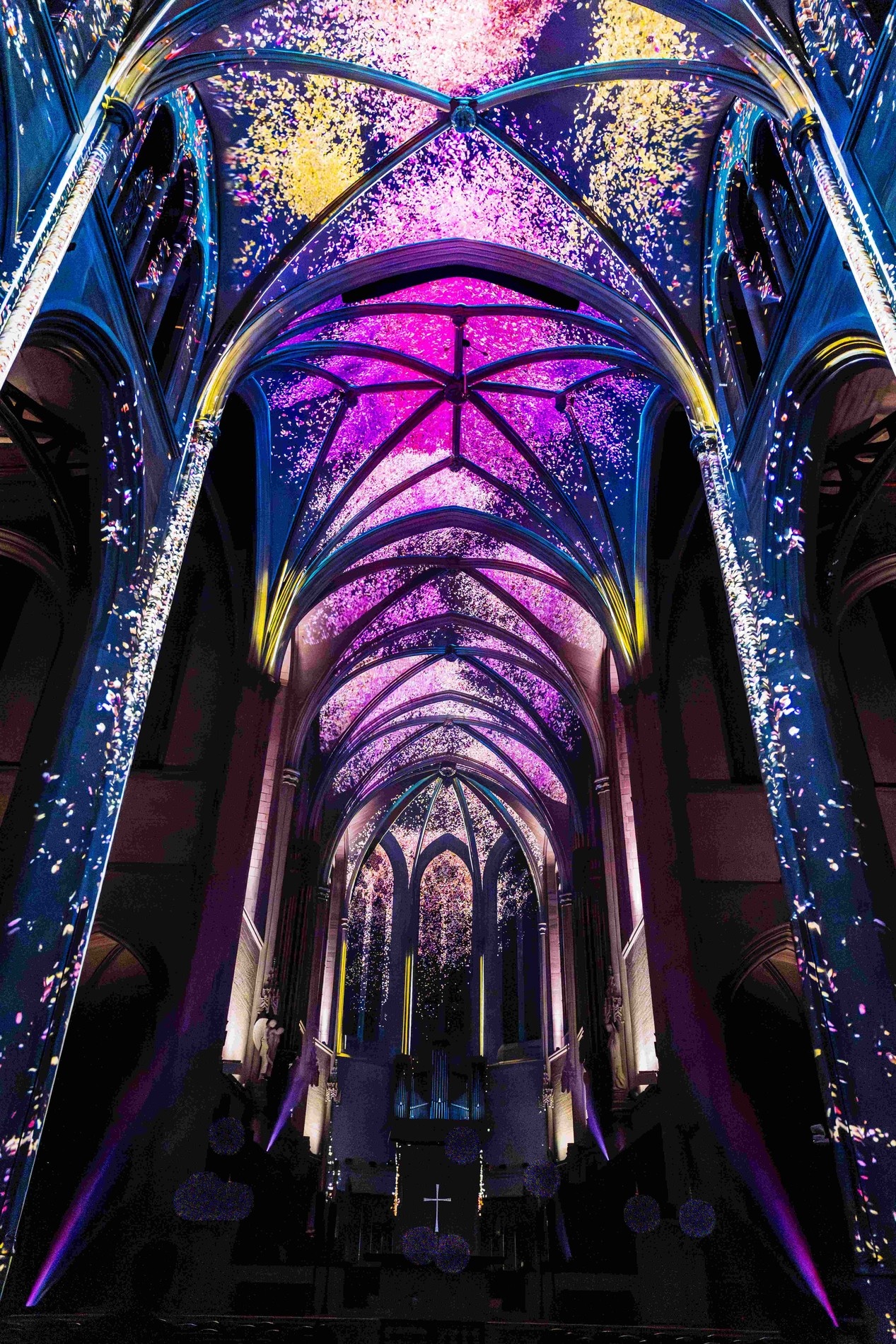 Mystický dialog světla a architektury: Aura od Moment Factory v sanfranciské katedrále