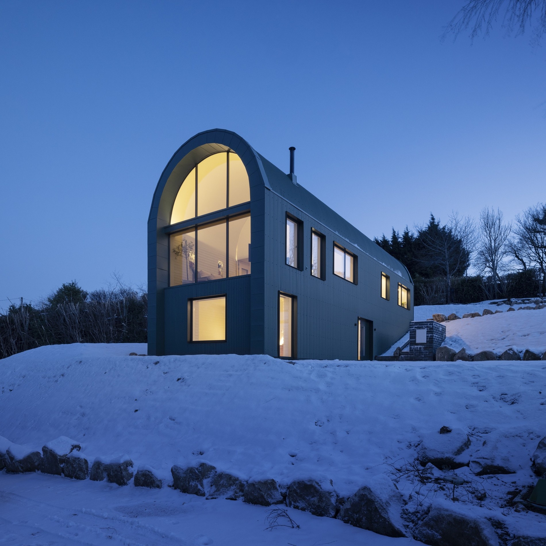 Forma čerpá inspiraci ze zelených vlnitých ocelových konstrukcí, které zdobí krajinu Wicklow. Foto: Aisling McCoy Photographer