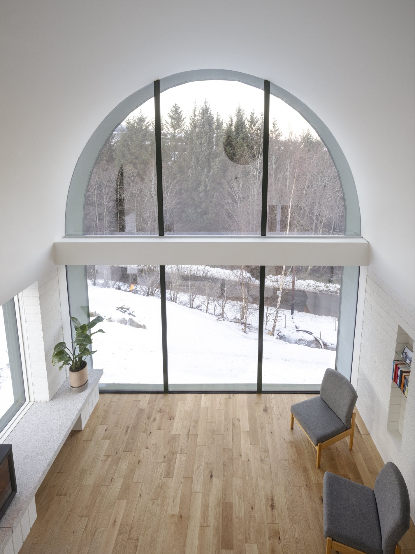 Obytné prostory v prvním patře maximálně využívají klenutý strop a ložnice pod ním, kde je budova částečně zapuštěna do kopce. Foto: Aisling McCoy Photographer
