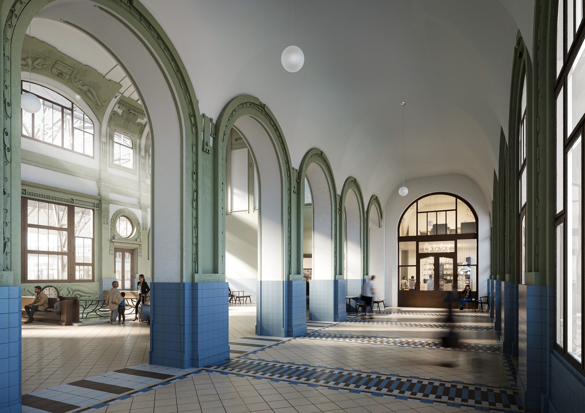 Secesní architektura Josefa Fanty a modernizace nádražní budovy v Praze. Zdroj: Správa železnic, DigiTry Art Technologies
