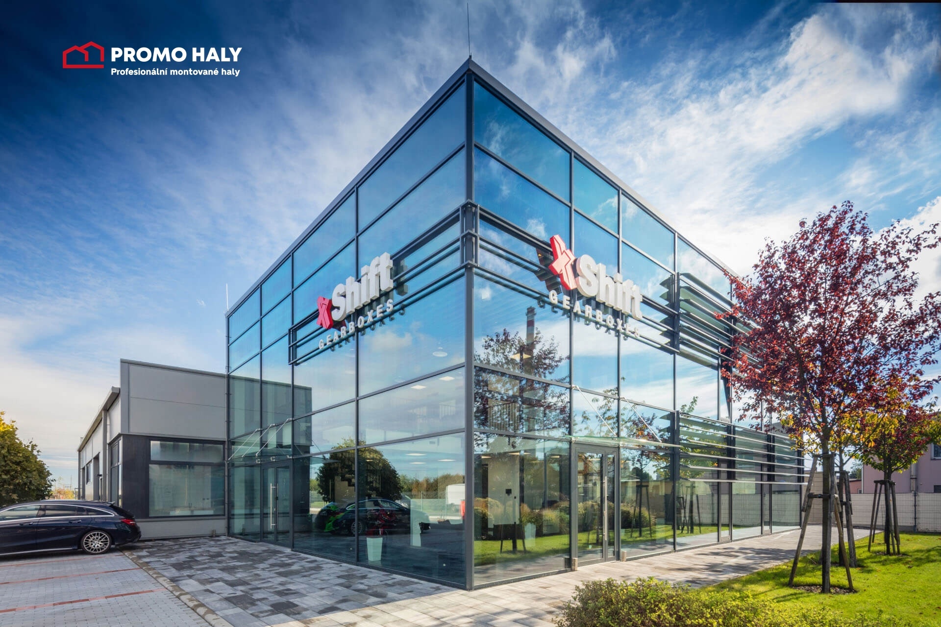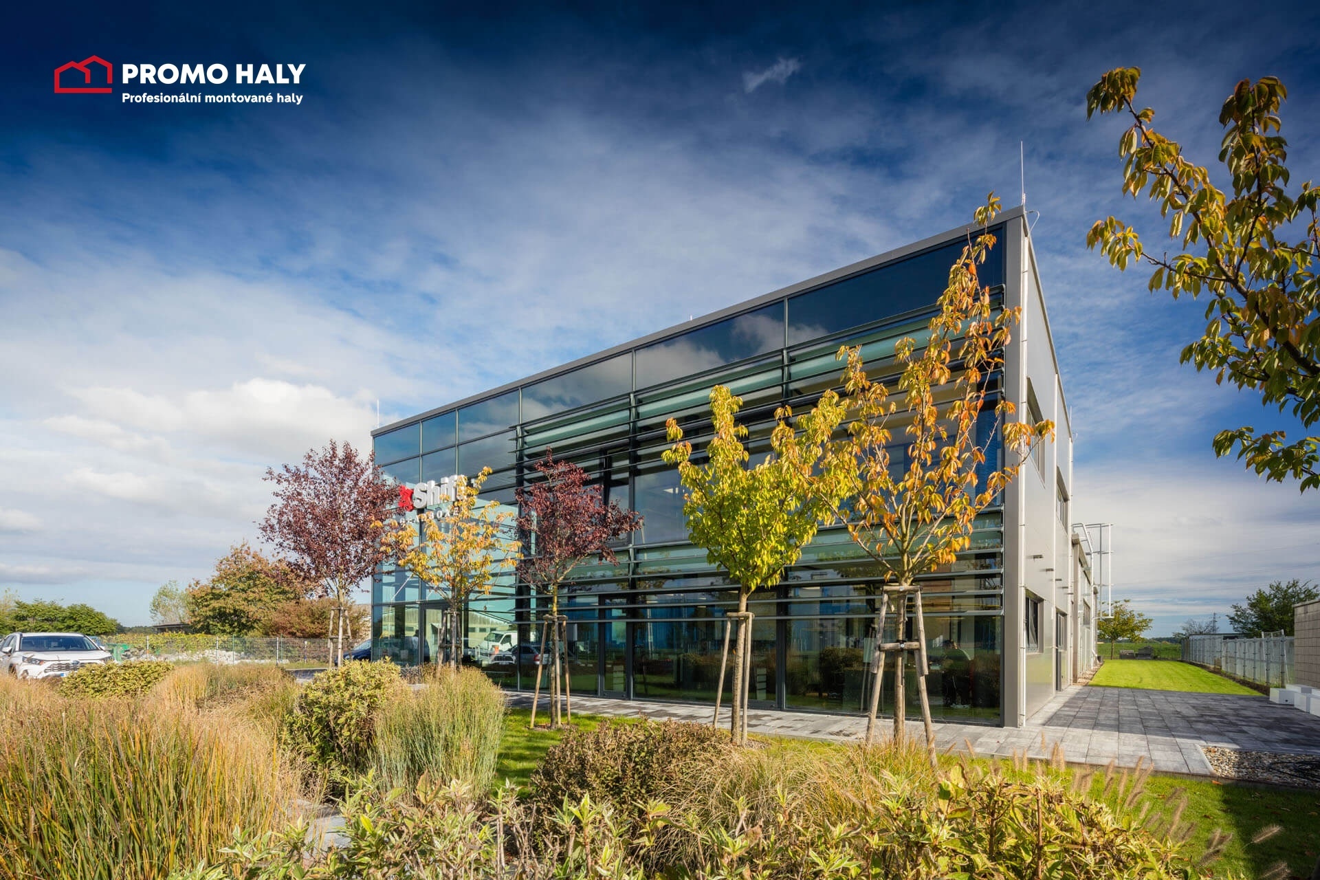 Typickým příkladem je hala X-Shift Gearboxes v Chropyni nedaleko Kroměříže, kde administrativa přirozeně navazuje na výrobní prostor. Díky ocelové konstrukci bylo možné navrhnout zajímavé designové prvky, a přitom zachovat optimální výšku. Administrativní část má dostatek denního světla díky fasádnímu prosklenému systému s výbornými tepelněizolačními skly Cool-lite. Administrativní část má přímý kontakt s provozem pomocí jasně oddělených komunikačních tras.