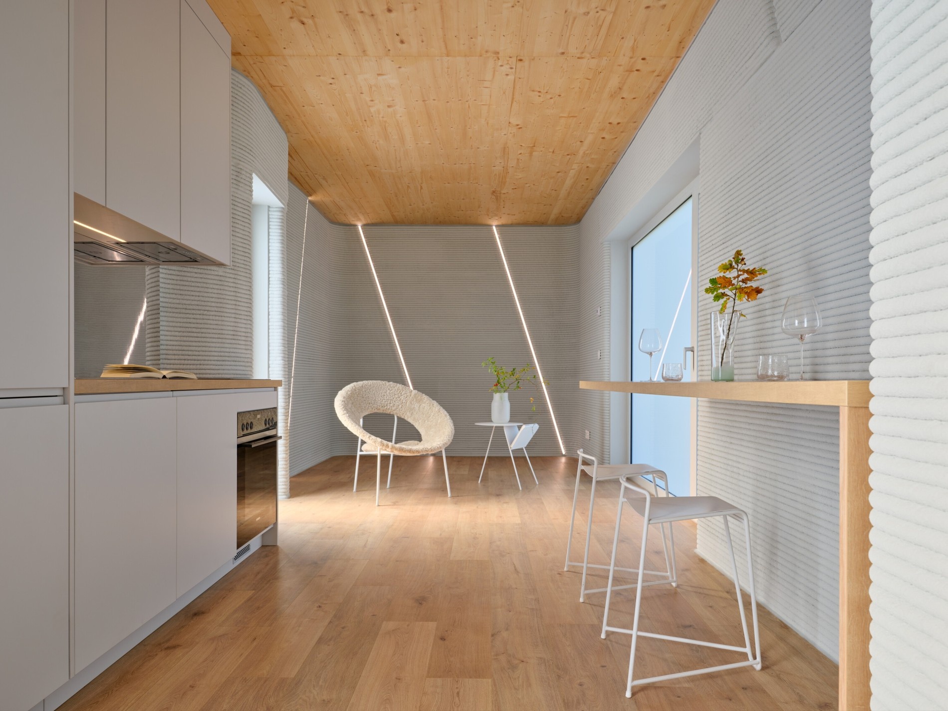 Projekt spojuje digitální výrobu, lokální materiály a modulární logiku, vzniká tak cenově dostupná, ekologická a snadno replikovatelná forma moderního bydlení.