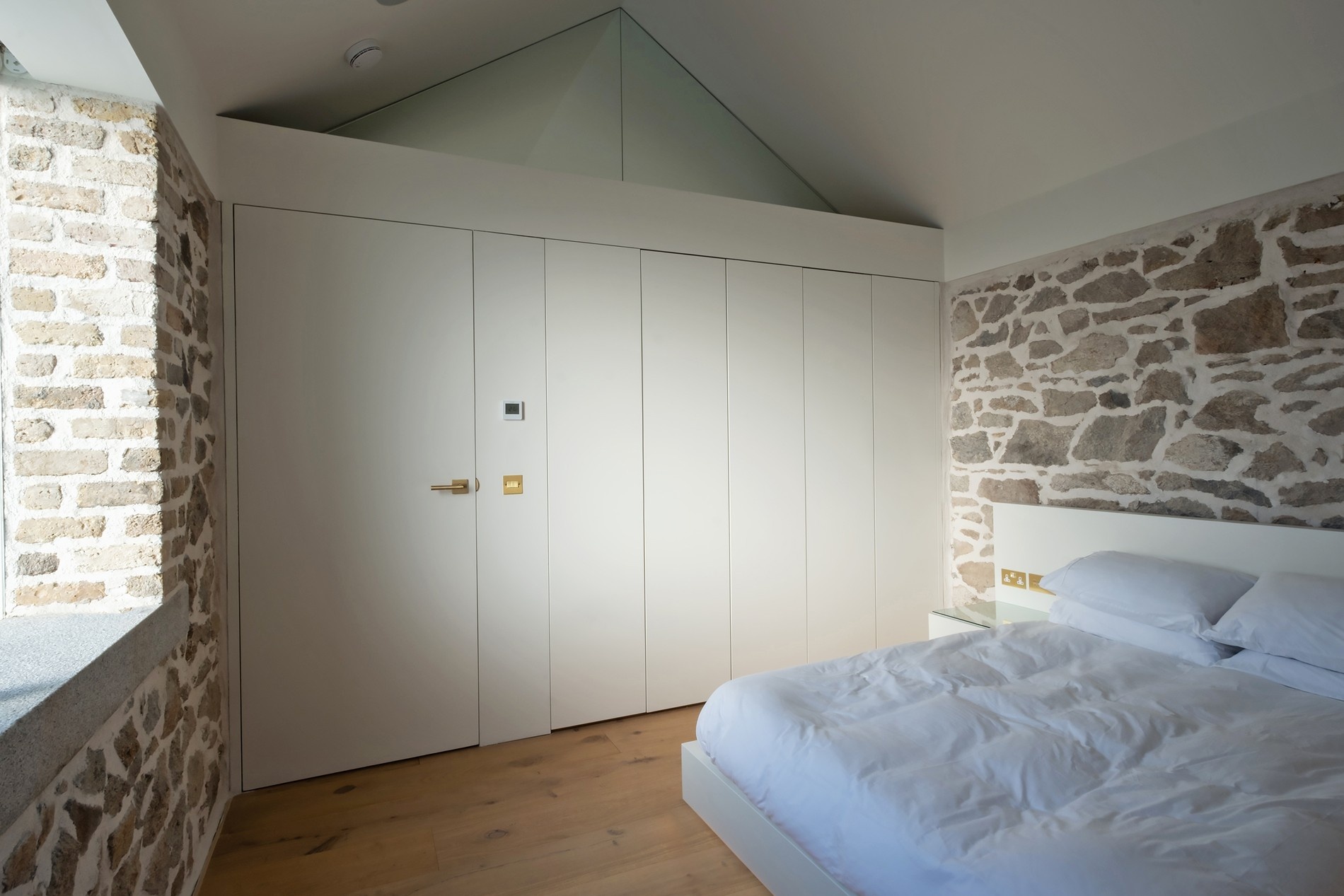 V hlavní části domu byly žulové zdi odhaleny, znovu spárovány a zvenku zaizolovány prodyšnou korkovou omítkou. To umožnilo odhalit původní zdi zevnitř. Foto: Shane Lynham