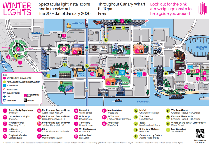 Mapa instalací na Canary Wharf. Zdroj: canarywharf.com