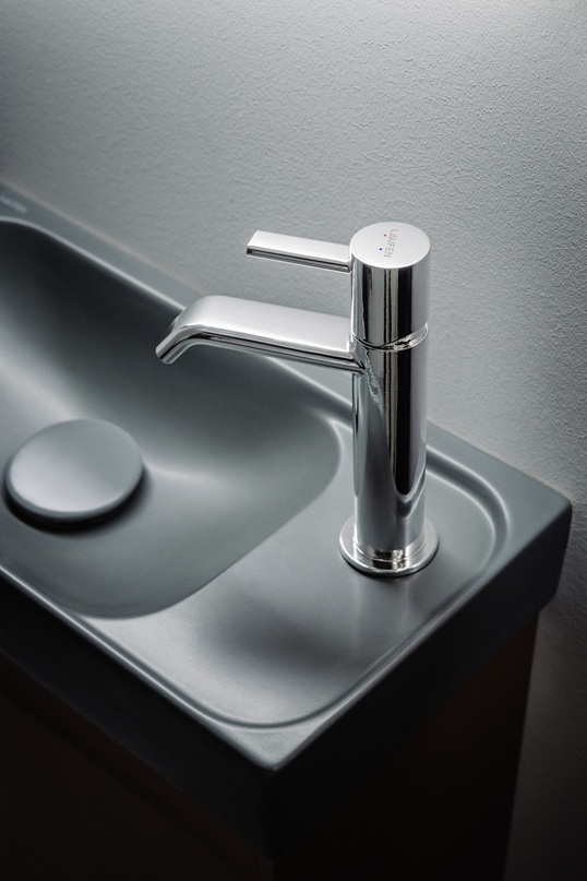 Kolekce MEDA nabízí umývátka a umyvadla v barvě grafit mat. Zaujmou zaoblenými vnitřními rohy a praktickými odkládacími plochami. V interiéru působí jako sjednocující prvek. Zdroj: LAUFEN CZ s.r.o