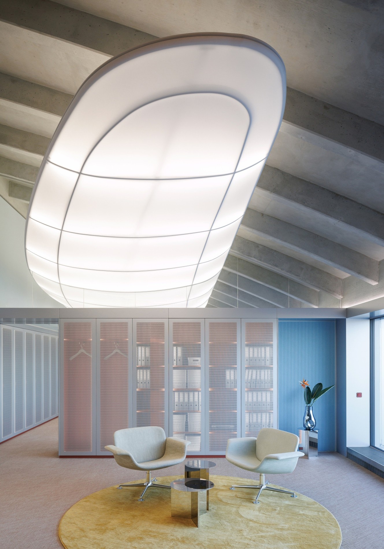Interiér inspirovaný letectvím a oceánem. Dominantou je svítící strop