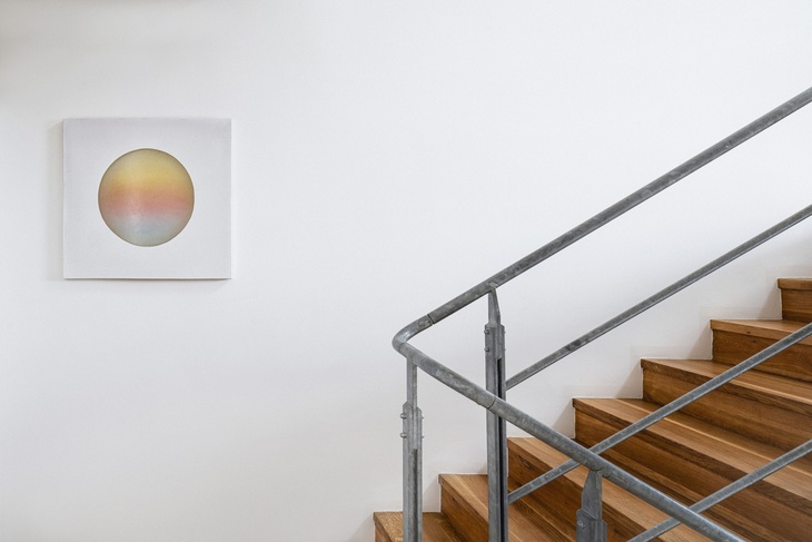V interiéru jsou ponechány a doplněny některé původní prvky, například pozinkované zábradlí, které propojením na hlavních a vedlejších podestách jednotlivých ramen získalo „neprašovský“ charakter. Renovovány a doplněny byly původní parkety a podlahové „lišty“ z pozinkovaného plechu. Stěny barevně ztlumené do bílé a šedé dávají vyniknout obrazům, část je obložena překližkou v přírodním tónu. Také koupelny byly změněny jak prostorově, tak celkovým laděním. Bílé velkoformátové obklady (3 × 1 m) doplňuje teracová dlažba a truhlářské kusy z dubového masivu. Původní vnitřní dveře s nadsvětlíky prošly renovací, nové jsou provedeny se skrytými zárubněmi.