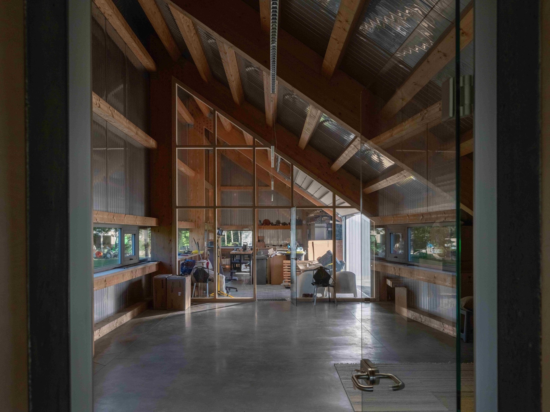 Útulnost, neobvyklá pro zemědělské budovy, je vytvořena volbou materiálů. Architekti se záměrně vyhýbají „levným“ řešením povrchové úpravy. Foto: Lukas Mykolaitis