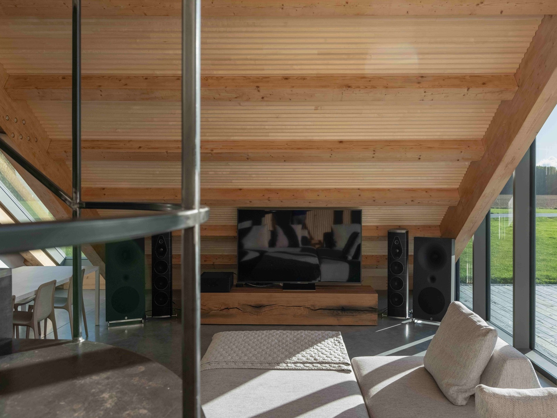 Tahle Jauja funguje obojetně. Tedy, na mnoho způsobů. Může být i kanceláří, ateliérem. Tím, co je zrovna zapotřebí. A přitom pořád zůstává, slouží jako stodola. Foto: Lukas Mykolaitis