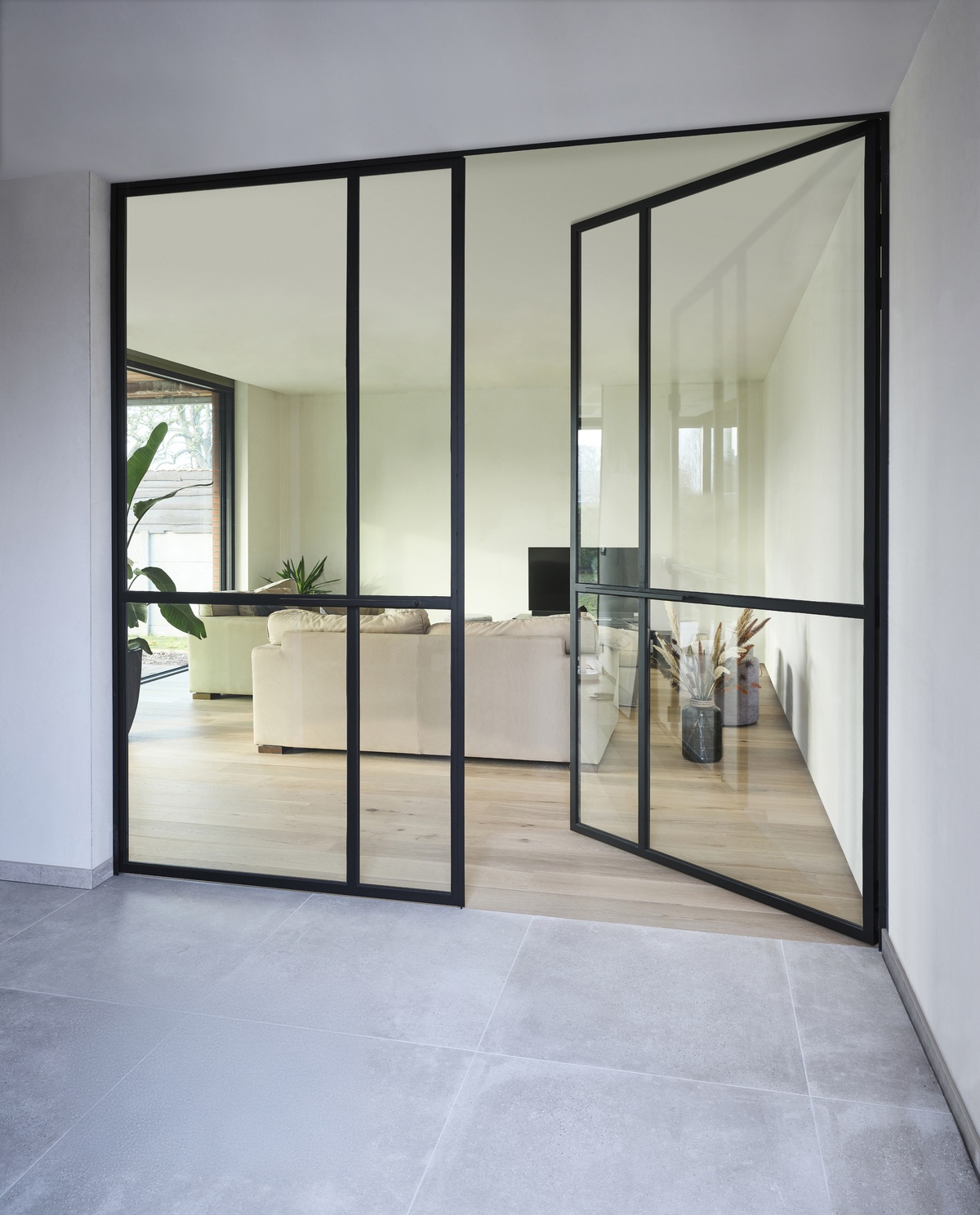 Tyto ocelové dveře a příčky jsou určeny pro použití v bytech i kancelářích, kde plní roli výrazného architektonického prvku.