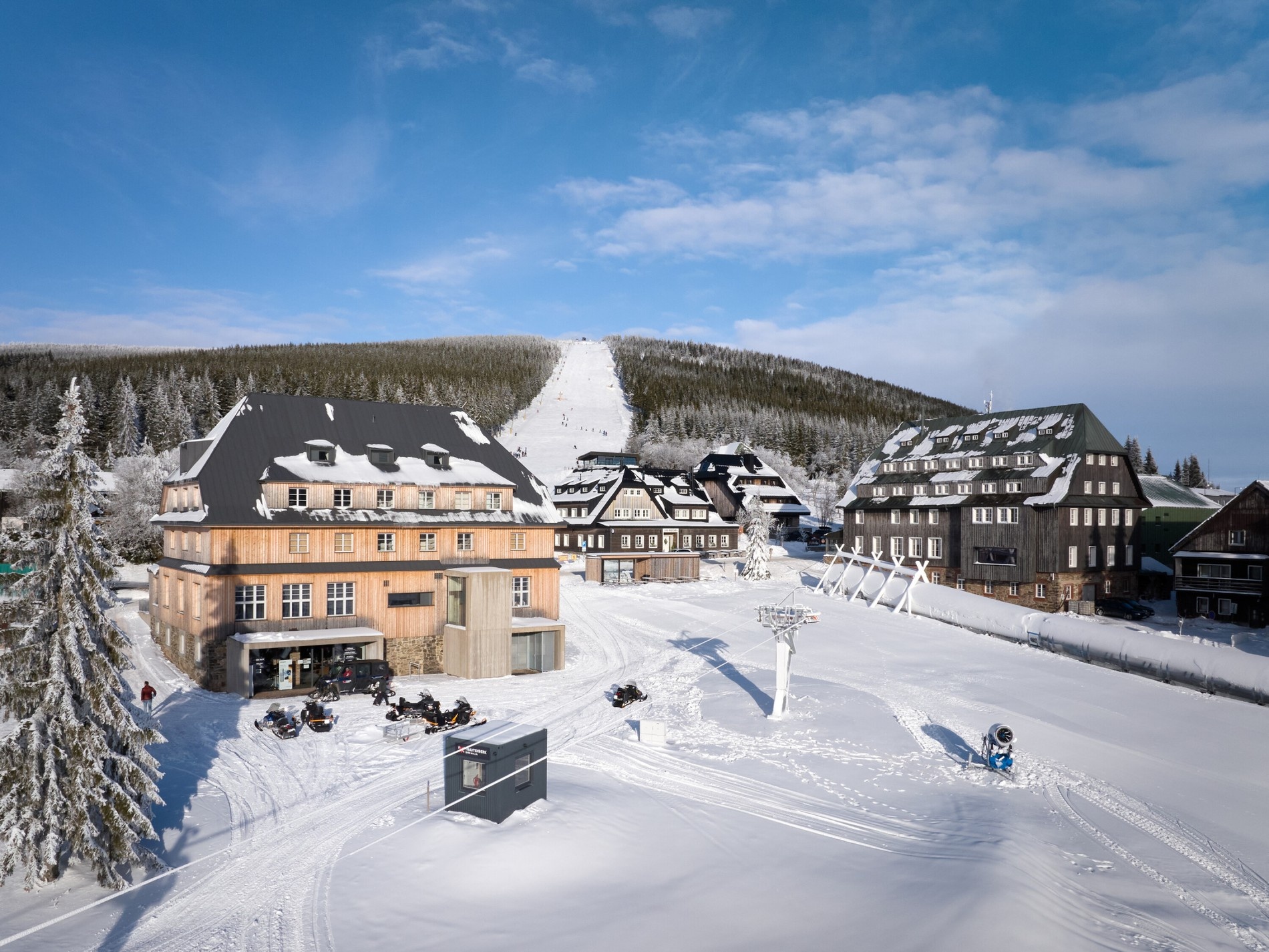 | Spolupracovníci a dodavatelé | Statika: Ing. Hynek Stiehl Audiovizuální koncept, kino, dodavatel AV techniky: AV MEDIA Grafický design, logo: Dynamo Design Stavební firma: 3K stavby Atypový nábytek: Truhlářství Kelner Zámečnické výrobky: Kovářství Postrach Fotografie kompozic lyžařů: Herbert Slavík |